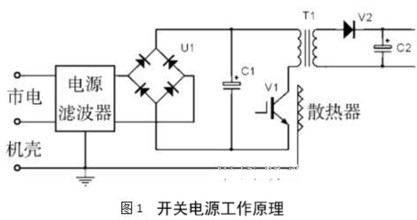 一般,對開關電源電磁兼容功能發(fā)生影響的要素詳細表現(xiàn)在以下幾點:榜首,外部噪聲影響開關電源,比如:使用電網(wǎng)傳輸進入開關電源的差模噪聲、共模噪聲攪擾開關電源操控電路等等;第二,開關電源輸進變流回路的非線性形成的電流波形畸變,形成的電流諧波分量污染電網(wǎng);第三,開關電源的高頻逆變回路呈現(xiàn)的電磁噪聲。開關電源類型多元化,依據(jù)電路結(jié)構(gòu),可以將其劃分紅直流改換時以及串聯(lián)式;依據(jù)鼓勵辦法,可以將其劃分紅他人鼓勵式和自我鼓勵式;依據(jù)開關管的組合,可以將其劃分紅推挽以及單管等等。可是任何類型的開關電源,都是借助開關器材關和開的時間比對傳輸電壓大小進行操控,遍及采用的操控辦法包含兩種,一是脈沖寬度調(diào)制,二是脈沖頻率調(diào)制。[2]由于開關開關電源開關頻率超過幾十乃至幾百千赫,電路的電壓改變率以及電流都說是適當大的,所以高頻整流器材以及開關器材的電流尖峰形成的諧波、高頻電壓器的電磁輻射形成的攪擾等噪聲都是適當強的電磁攪擾源。這些電磁攪擾信號跟著開關頻率的提升、輸出功率的加大而明顯加強,會使用電源線和差模與共模的方向向外面?zhèn)鲗В草椛涞礁浇臻g,威脅其他電子設備的安全安穩(wěn)運轉(zhuǎn)。開關電源作業(yè)原理簡圖如圖1所示,表明開關電源中電磁噪聲的呈現(xiàn)和耦合途徑。