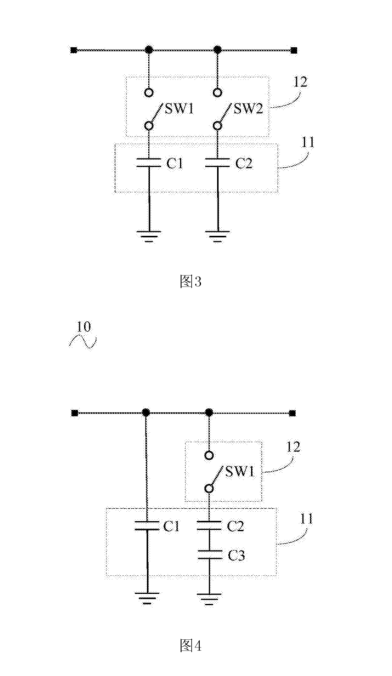 3.啟動(dòng)電路的控制電路包括第一電阻、場效應(yīng)管和第一二極管,場效應(yīng)管的柵極連接第一電阻的一端,場效應(yīng)管的漏極連接第一二極管的正極和開關(guān)件,場效應(yīng)管的源極接地,第--電阻的另一端連接微控制單元,第一二極管的負(fù)極連接預(yù)定供電電壓和開關(guān)件。開關(guān)件包括繼電器或NMOS管。啟動(dòng)電路包括與開關(guān)器件連接的延時(shí)電路用于在開關(guān)電源上電過程中按照設(shè)定時(shí)序驅(qū)動(dòng)所開關(guān)件的通斷狀態(tài)調(diào)節(jié)電容電路的電容值。