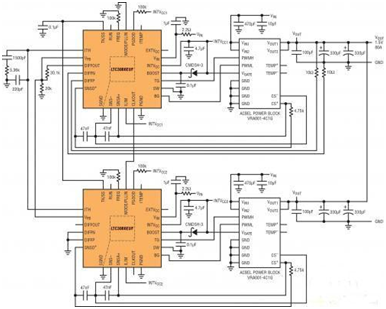 LTC3866 采用恒定頻率峰值電流模式控制架構(gòu),從而可確保逐周期峰值電流限制和不同電源之間的均流。