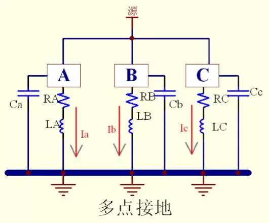 (2)高頻電路(>10MHz),建議采用多點(diǎn)接地;