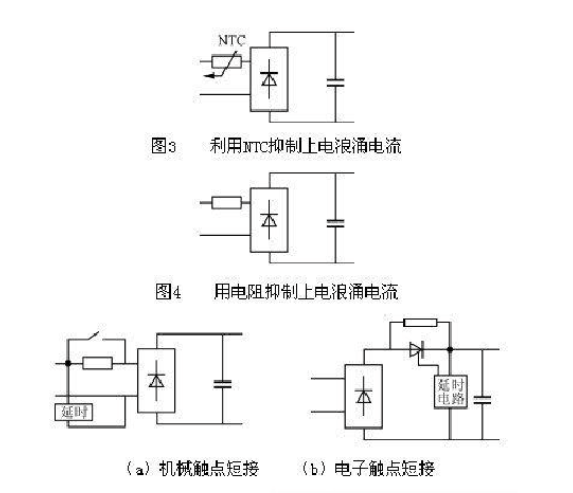 浪涌會形成電源電壓波形陷落,使得供電質(zhì)量變差,甚至?xí)绊懫渌秒娫O(shè)備的作業(yè)以及使保護(hù)電路動作;因為浪涌沖擊整流器的輸入熔斷器,使其在若干次上電進(jìn)程的浪涌沖擊下而非過載熔斷。為避免這類現(xiàn)象發(fā)生,而不得不選用更高額定電流的熔斷器,但將呈現(xiàn)過載時熔斷器不能熔斷,起不到保護(hù)整流器及用電電路的效果;過高的上電浪涌對整流器和濾波電容器形成不可康復(fù)的損壞。因而,有必要對帶有電容濾波的整流器輸入浪涌加以約束。