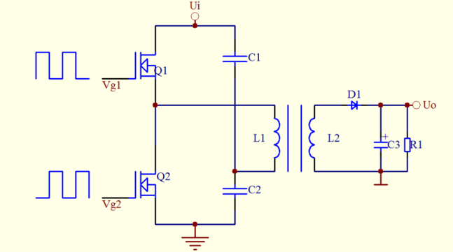 半橋式:相對于全橋式少用了一半的管子,L1兩端電壓為開關(guān)電源電壓的一半,可是要提高變壓器的匝數(shù)比才能夠滿足要求。同時也給驅(qū)動電路的規(guī)劃帶來了便利。只需要兩路阻隔并且不共地的信號即可。
