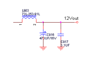 因為輸出干擾的頻譜相當豐富,從幾十赫茲到幾十兆赫茲均含分量。因為在高頻的情況下,濾波電容等效由純電容(C)、等效串聯(lián)電阻(RES)和等效串聯(lián)電感(LES)構(gòu)成的串聯(lián)電路。在作業(yè)頻率f超過電容器的自諧振頻率fr時,電容器就起到電感的作用。值大的濾波電容對低頻干擾比較敏感,相反,值小的濾波電容吸收高頻干擾的作用比較好。因此不能光采用大電解電容濾波C916,還有必要加接自諧振頻率很高的陶瓷電容器C917。