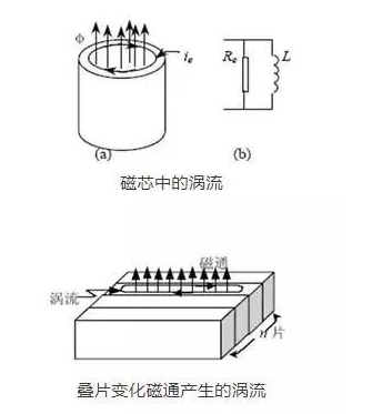 當(dāng)變壓器作業(yè)時(shí)。磁芯中有磁力線穿過,在與磁力線垂直的平面上就會(huì)產(chǎn)生感應(yīng)電流,因?yàn)殡娏髯猿砷]合回路形成環(huán)流,且成旋渦狀,故稱為渦流。渦流的存在使磁芯發(fā)熱,耗費(fèi)能量,這種損耗稱為渦流損耗。