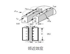 當(dāng)兩個(gè)相鄰導(dǎo)體流過方向相反的電流時(shí),相互之間會(huì)產(chǎn)生磁動(dòng)勢(shì),則磁動(dòng)勢(shì)在對(duì)方導(dǎo)體中會(huì)產(chǎn)生渦流,引起損耗。