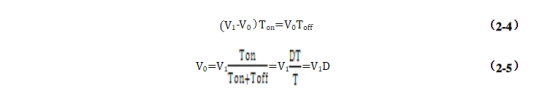 現(xiàn)在來講講開關(guān)電源的電路作業(yè)原理:Boost電路即升壓電路,當Q1導(dǎo)通時,能量從輸入電源流入貯存于電感L1中,此刻二極管D1反偏,負載由濾波電容C1供應(yīng)能量,將C1中貯存的電能(C1V02/2)釋放給負載R1。當Q1截止時,電感L1中電流不能驟變,此刻二極管D1導(dǎo)通,電感中貯存的能量(L1I2/2)經(jīng)二極管D1,流入電容C1,并供應(yīng)負載R1。根據(jù)電感的伏秒平衡,在一個周期內(nèi)電感的伏秒乘積和為零。假如Q1導(dǎo)通時刻Ton越大,那么Q1截止時提供應(yīng)負載的電壓就會越大。下面經(jīng)過詳細的計算來加深了解:根據(jù)伏秒平衡有式(2-2)、(2-3)。