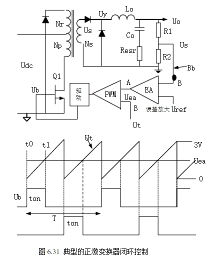 6.4.1?概述圖6.31為一個(gè)典型的正激變換器閉環(huán)調(diào)度的比如。能夠看出是一個(gè)負(fù)回響系統(tǒng)。PWM操控芯片中包含了過(guò)錯(cuò)擴(kuò)大器和PWM構(gòu)成電路。操控芯片也供給許多其他的功能,但了解閉環(huán)安穩(wěn)性問(wèn)題,僅需考慮過(guò)錯(cuò)擴(kuò)大器和PWM。關(guān)于輸出電壓Uo緩慢或直流改動(dòng),閉環(huán)當(dāng)然是安穩(wěn)的。例如輸入電網(wǎng)或負(fù)載改動(dòng)(干擾),引起Uo的改動(dòng),經(jīng)R1和R2取樣(回響網(wǎng)絡(luò)),送到過(guò)錯(cuò)擴(kuò)大器EA的反相輸入端,再與加在EA同相輸入端的參閱電壓(輸入電壓)Uref比較。將引起EA的輸出直流電平Uea改動(dòng),再送入到脈沖寬度調(diào)制器PWM的輸入端A。在PWM中,直流電平Uea與輸入B端0~3V三角波Ut比較,發(fā)生一個(gè)矩形脈沖輸出,其寬度ton等于三角波初步時(shí)刻t0到PWM輸入B三角波與直流電平相交時(shí)刻t1。此脈沖寬度選擇了芯片中輸出晶體管導(dǎo)通時(shí)刻,一起也選擇了操控晶體管Q1的導(dǎo)通時(shí)刻。Udc的添加引起Uy的添加,因Uo=Uyton/T,Uo也隨之添加。Uo添加引起Us添加,并因而Uea的削減。從三角波初步到t1的ton相應(yīng)削減,Uo恢復(fù)到它的初始值。當(dāng)然,反之亦然。PWM發(fā)生的信號(hào)能夠從芯片的輸出晶體管發(fā)射極或集電極輸出,經(jīng)電流擴(kuò)大供給Q1基極驅(qū)動(dòng)。但不論從那一點(diǎn)-發(fā)射極仍是集電極-輸出,有必要確保當(dāng)Uo添加,要引起ton削減,即負(fù)回響。應(yīng)當(dāng)注意,大多數(shù)PWM芯片的輸出晶體管導(dǎo)通時(shí)刻是t0到t1。關(guān)于這樣的芯片,Us送到EA的反相輸入端,PWM信號(hào)假定驅(qū)動(dòng)功率NPN晶體管基極(N溝道MOSFET的柵極),則芯片輸出晶體管應(yīng)由發(fā)射極輸出。但是,在某些PWM芯片(TL494)中,它們的導(dǎo)通時(shí)刻是三角波Ut與直流電平(Uea)相交時(shí)刻到三角波中止時(shí)刻t2。關(guān)于這樣的芯片,假設(shè)驅(qū)動(dòng)NPN晶體管,輸出晶體管導(dǎo)通(假設(shè)從芯片的輸出晶體管發(fā)射極輸出),這樣會(huì)隨晶體管導(dǎo)通時(shí)刻添加,使得Uo添加,這是正回響,而不是負(fù)回響。因而,TL494一類(lèi)芯片,Us送到EA的同相輸入端,Uo添加使得導(dǎo)通時(shí)刻削減,就能夠選用芯片的輸出晶體管的發(fā)射極驅(qū)動(dòng)。?圖6.31電路是負(fù)回響且低頻安穩(wěn)。但在環(huán)路內(nèi),存在低電平噪音電壓和含有豐盛連續(xù)頻譜的瞬態(tài)電壓。這些重量經(jīng)過(guò)輸出Lo,Co濾波器、過(guò)錯(cuò)擴(kuò)大器和Uea到Uy的PWM調(diào)節(jié)器引起增益改動(dòng)和相移。在諧波重量中的一個(gè)重量,增益和相移或許導(dǎo)致正回響,而不再是負(fù)回響,在6.2.7節(jié)我們已議論過(guò)閉環(huán)振動(dòng)的機(jī)理。以下就開(kāi)關(guān)開(kāi)關(guān)電源作加體分析。?6.4.2?環(huán)路增益?仍是來(lái)研討圖6.31正激變換器。假定回響環(huán)在B點(diǎn)-連接到過(guò)錯(cuò)擴(kuò)大器的反相輸入端斷開(kāi)成開(kāi)環(huán)。任何一次諧波重量的噪聲從B經(jīng)過(guò)EA擴(kuò)大到Uea,由Uea傳遞到電壓Uy的平均值,和從Uy的平均值經(jīng)過(guò)Lo,Co回來(lái)到Bb(正好是從前環(huán)路斷開(kāi)點(diǎn))都有增益變化和相移。這便是6.2.7議論的環(huán)路增益信號(hào)通路。?假設(shè)假定某個(gè)頻率f1的信號(hào)在B注入到環(huán)路中,回到B的信號(hào)的幅值和相位被上面提到回路中的元件改動(dòng)了。假設(shè)改動(dòng)后的回來(lái)的信號(hào)與注入的信號(hào)相位準(zhǔn)確相同,而且幅值等于注入信號(hào),即滿意GH=-1。要是現(xiàn)在將環(huán)閉合(B連接到Bb),而且注入信號(hào)移開(kāi),電路將以頻率f1繼續(xù)振動(dòng)。這個(gè)引起開(kāi)端振動(dòng)的f1是噪聲頻譜中的一個(gè)重量。?為抵達(dá)輸出電壓(或電流)的靜態(tài)精度,過(guò)錯(cuò)擴(kuò)大器必須有高增益。高增益就或許引起振動(dòng)。過(guò)錯(cuò)擴(kuò)大器以外的傳遞函數(shù)一般無(wú)法改動(dòng),為避免參與過(guò)錯(cuò)擴(kuò)大器往后振動(dòng),一般經(jīng)過(guò)改動(dòng)過(guò)錯(cuò)擴(kuò)大器的頻率特性(校正網(wǎng)絡(luò)),使得環(huán)路頻率特性以-20dB/dec穿越,并有45°相位裕度,以抵達(dá)閉環(huán)的安穩(wěn)。以下我們研討過(guò)錯(cuò)擴(kuò)大器以外的電路傳遞函數(shù)的頻率特性。帶有LC濾波電路的環(huán)路增益Gf?除了反激變換器(輸出濾波僅為輸出電容)外,這兒議論的全部拓?fù)涠加休敵鰹V波器。一般濾波器設(shè)計(jì)時(shí)根據(jù)脈動(dòng)電流為平均值(輸出電流)的20%選取濾波電感。根據(jù)容許輸出電壓紋波和脈動(dòng)電流值以及電容的ESR選取輸出濾波電容。假設(shè)電解電容沒(méi)有ESR(最新產(chǎn)品),只按脈動(dòng)電流和容許紋波電壓選取。由此取得輸出濾波器的諧振頻率,特征阻抗,ESR零點(diǎn)頻率。在頻率特性一節(jié)圖6.7示出了LC濾波器在不同負(fù)載下的幅頻和相頻特性。?為簡(jiǎn)化議論,假定濾波器為臨界阻尼Ro=1.0Zo,帶有負(fù)載電阻的輸出LC濾波器的幅頻特性如圖6.32(a)中12345所示。此特性假定輸出電容的ESR為零。在低頻時(shí),Xc>>XL,輸入信號(hào)不衰減,增益為1即0dB。在f0以上,每十倍頻Co阻抗以20dB削減,而Lo阻抗以20dB