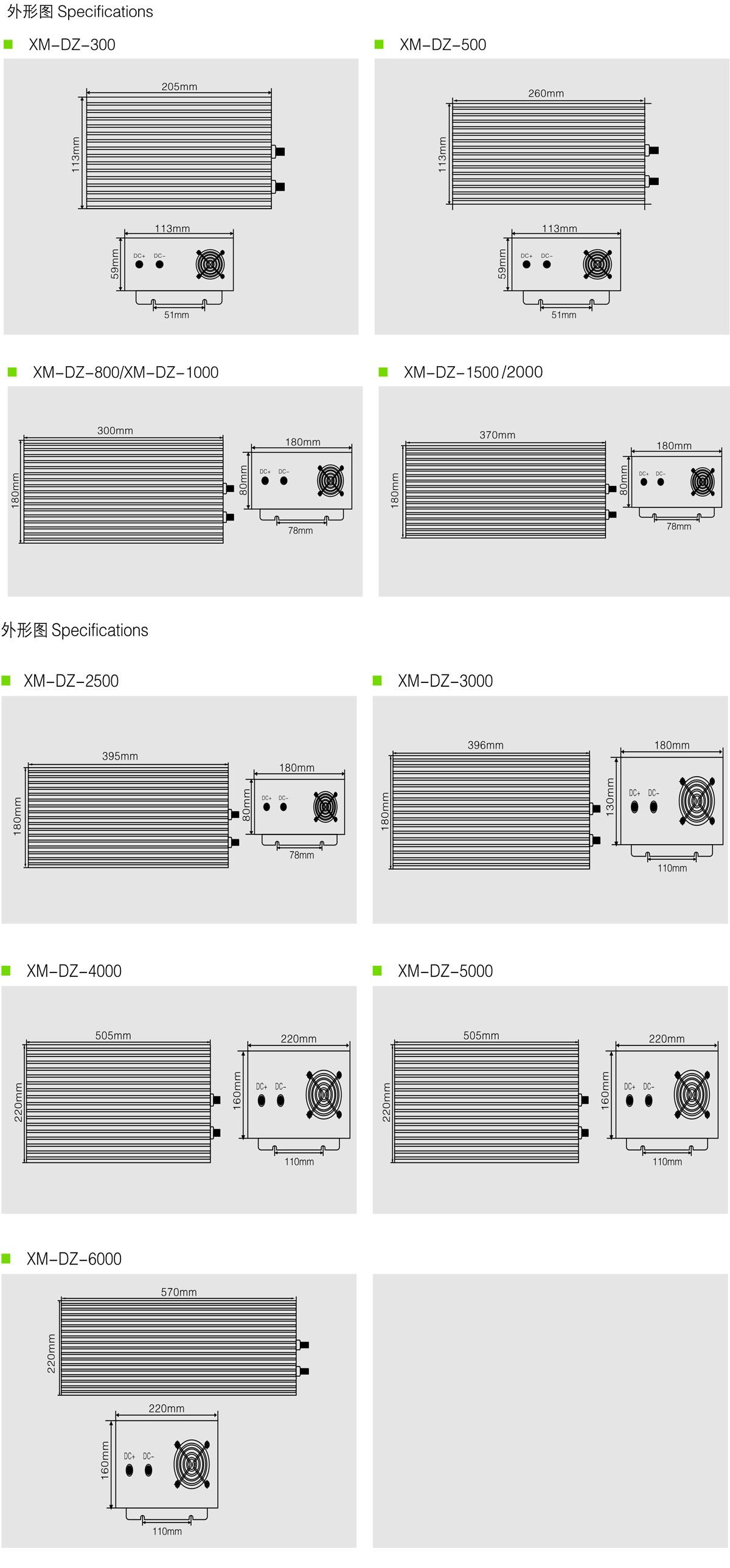 有短路、過載、欠壓、過壓、過溫、防反接保護(hù) 散熱風(fēng)機智能控制 工作噪音小、效率高 鋁裝外殼,表面噴砂陽極氧化處理、硬度高、外形美觀